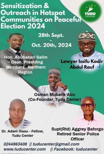 TUDU CENTER FOR LEADERSHIP AND DEVELOPMENT COMMENCES SENSITIZATION AND OUTREACH PROGRAMME TO HOTSPOT COMMUNITIES ON PEACEFUL 2024 ELECTIONS